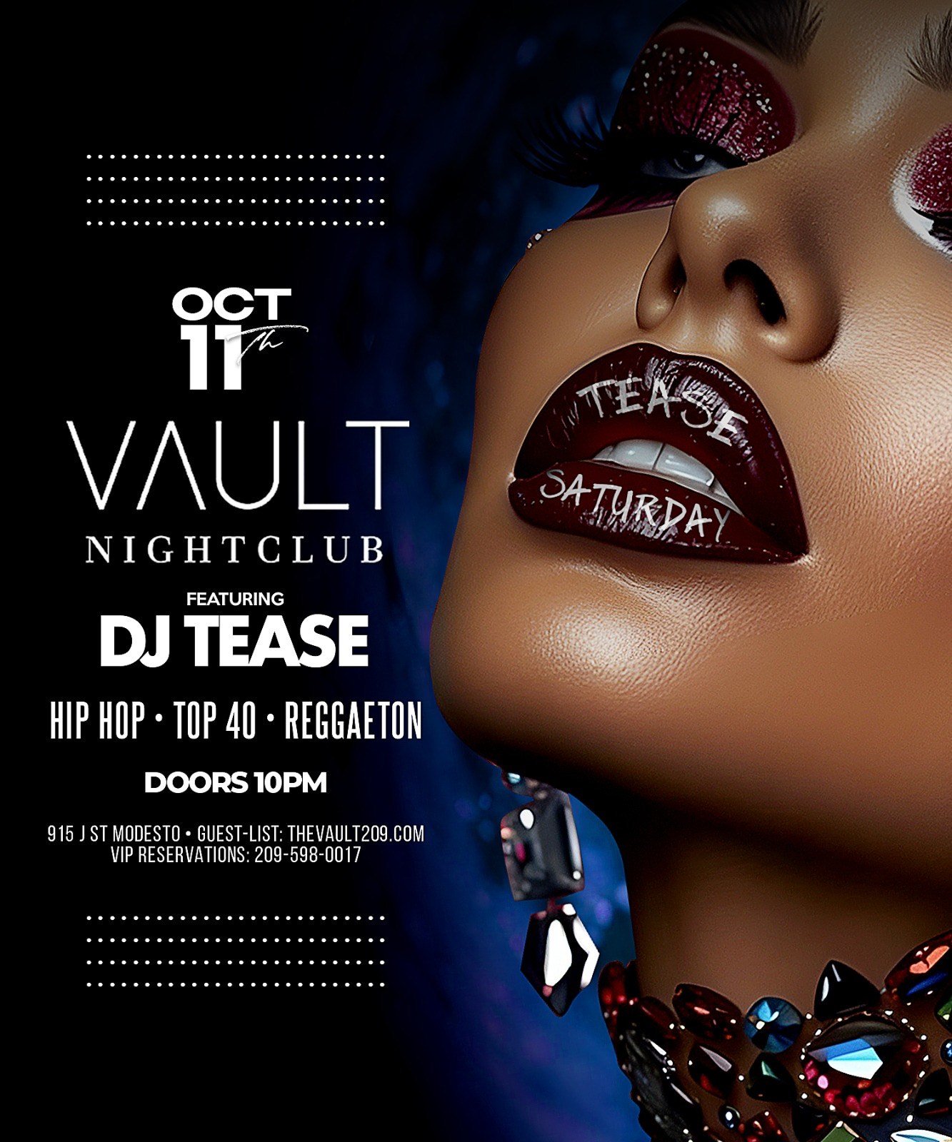 This Saturday at Vault Nightclub in downtown Modesto, weโre bringing the heat ๐ฅ with DJ Tease on the soundtrack! ๐ง Get ready for the best party in the 209 ๐๐บ